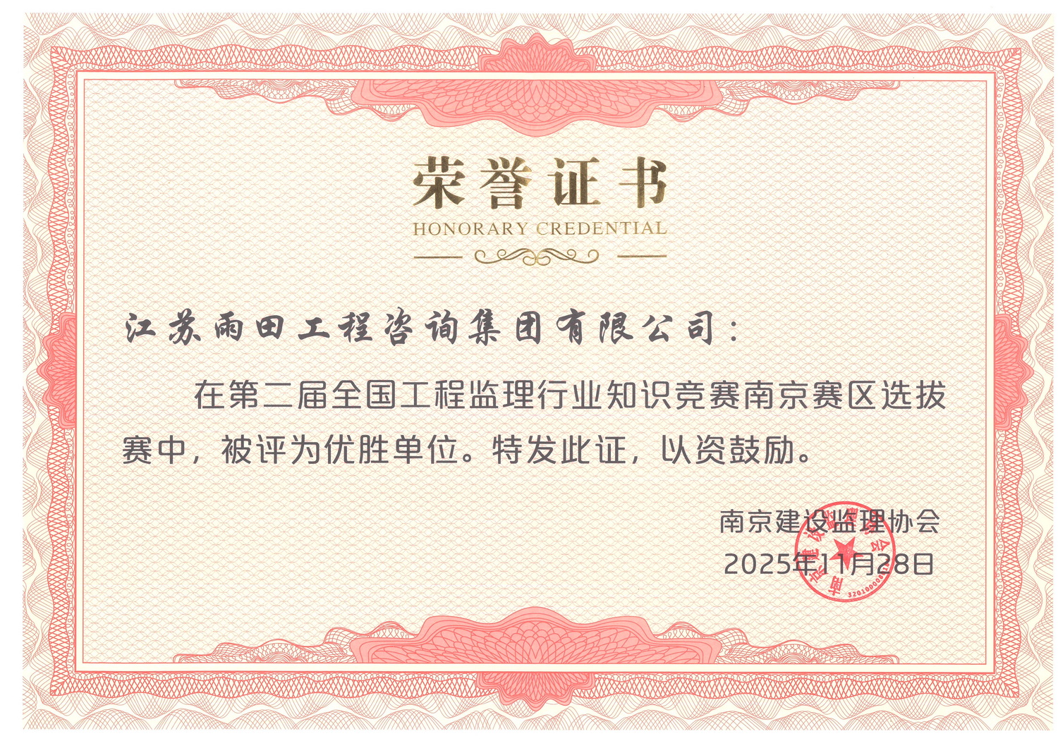 全国工程监理行业知识竞赛江苏赛区选拔赛优胜单位特别奖